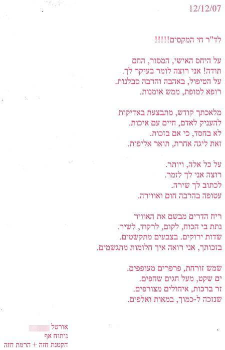 מכתב תודה מאורטל